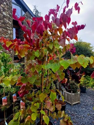 Sélection horticole de l'arboretum JC Raulston (USA) aux couleurs automnales extraordinaires, du jaune au pourpre en passant par les oranges, rouges, roses en viariations extrêmes. Buisson à petit arbre de 4 à 5m de haut.