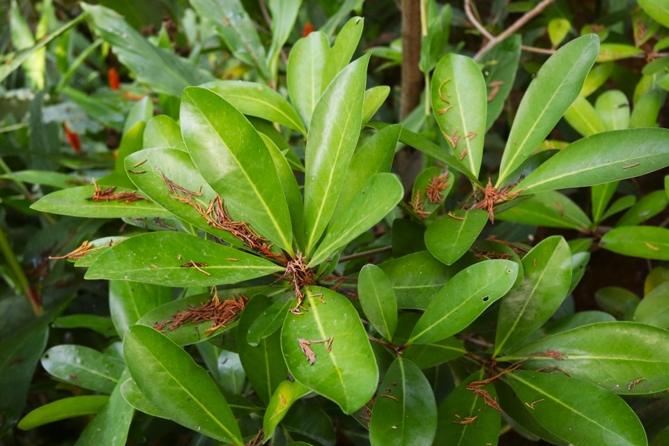 • FORME: Les feuilles sont ovales, coriaces et brillantes, d'environ 5 à 15 cm de long.