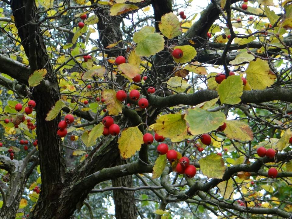 Aubépine en forme de petit arbre au port arqué. Feuilles pleines, ovales, jaune orange en automne. Gros fruits rouges en automne. Hauteur de 3 à 4m.