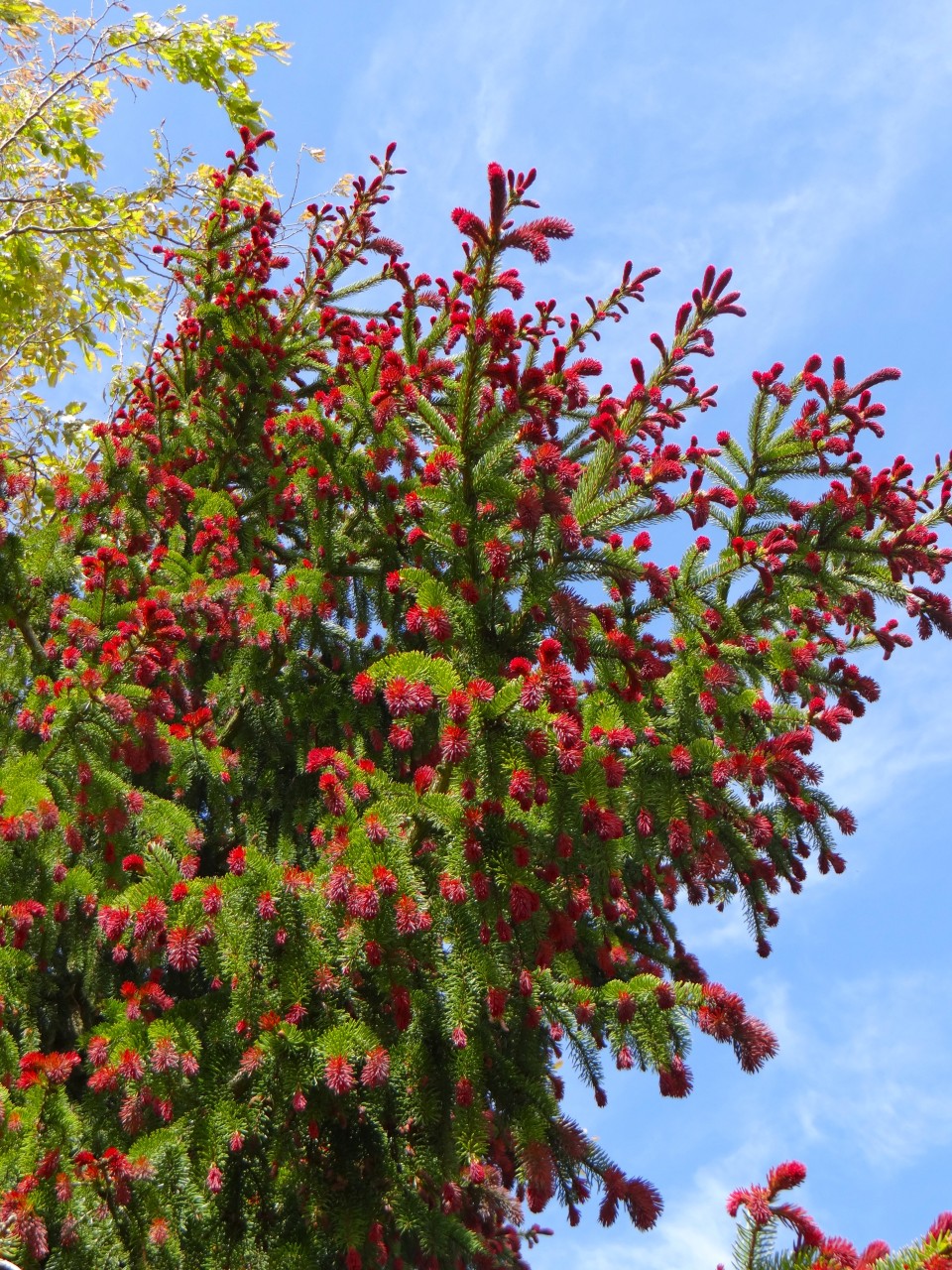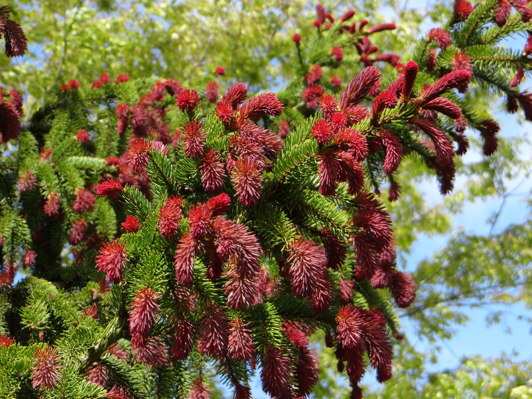 Variété naine à intermédiaire, d'un vert foncé… sauf au printemps, lorsque ses jeunes pousses prennent une teinte magenta.