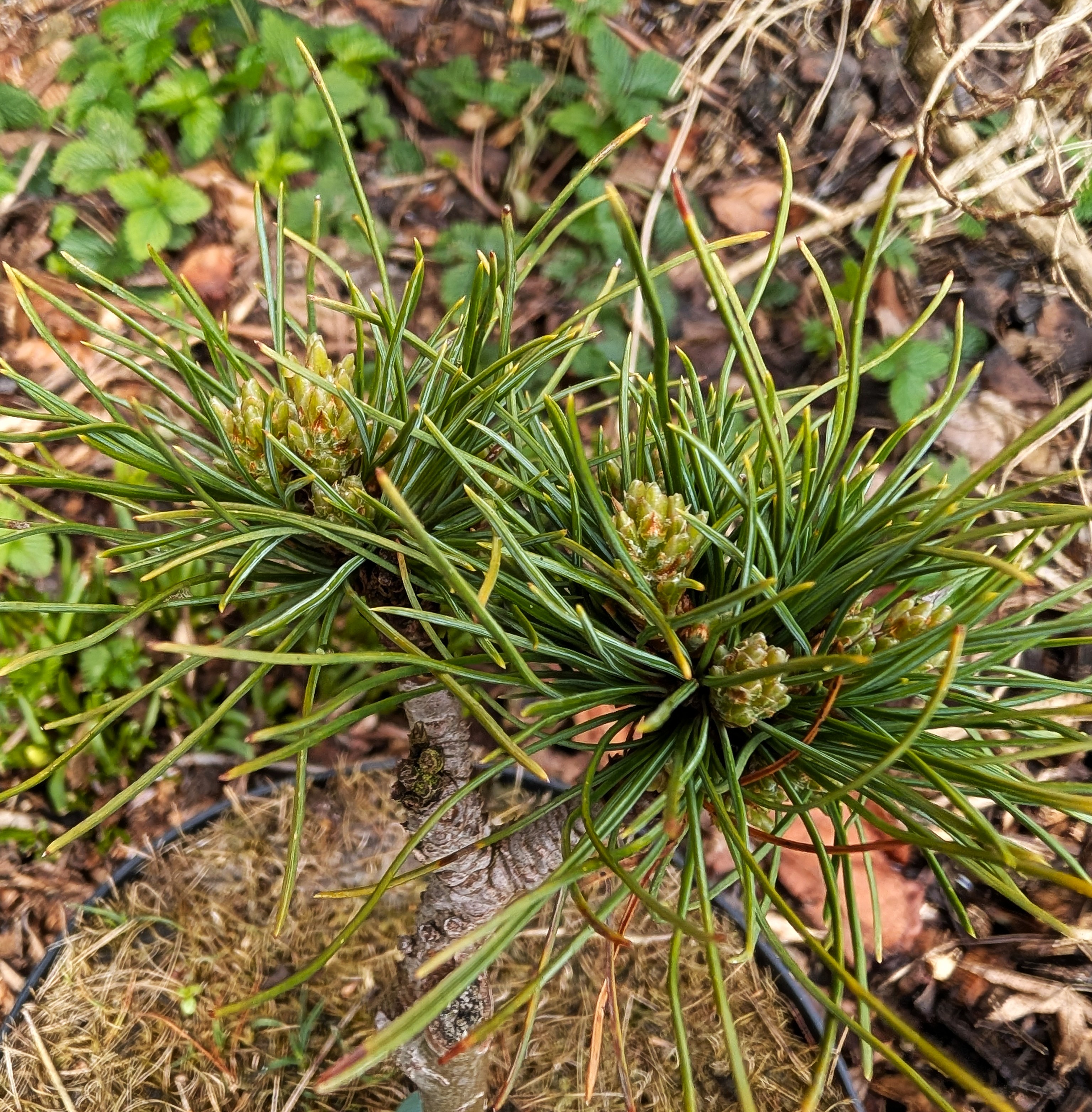 - NOTE: Les pousses sont normales, mais présentent 3 à 4 fois plus de bourgeons latéraux que les pousses de même longueur chez l'espèce sauvage. Les aiguilles sont légèrement plus courtes que chez l'espèce type