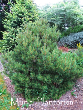 Pin miniature aux rameaux disposé en plumets érigés et dense. Port globuleux. Aiguilles vert intense. Hauteur 1m à 1,5m.