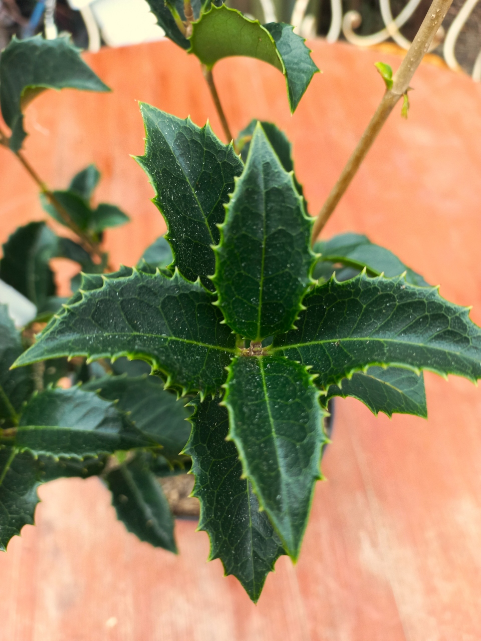 Variété d'osmanthe hybride connue pour ses grandes feuilles et sa floraison parfumée en automne.